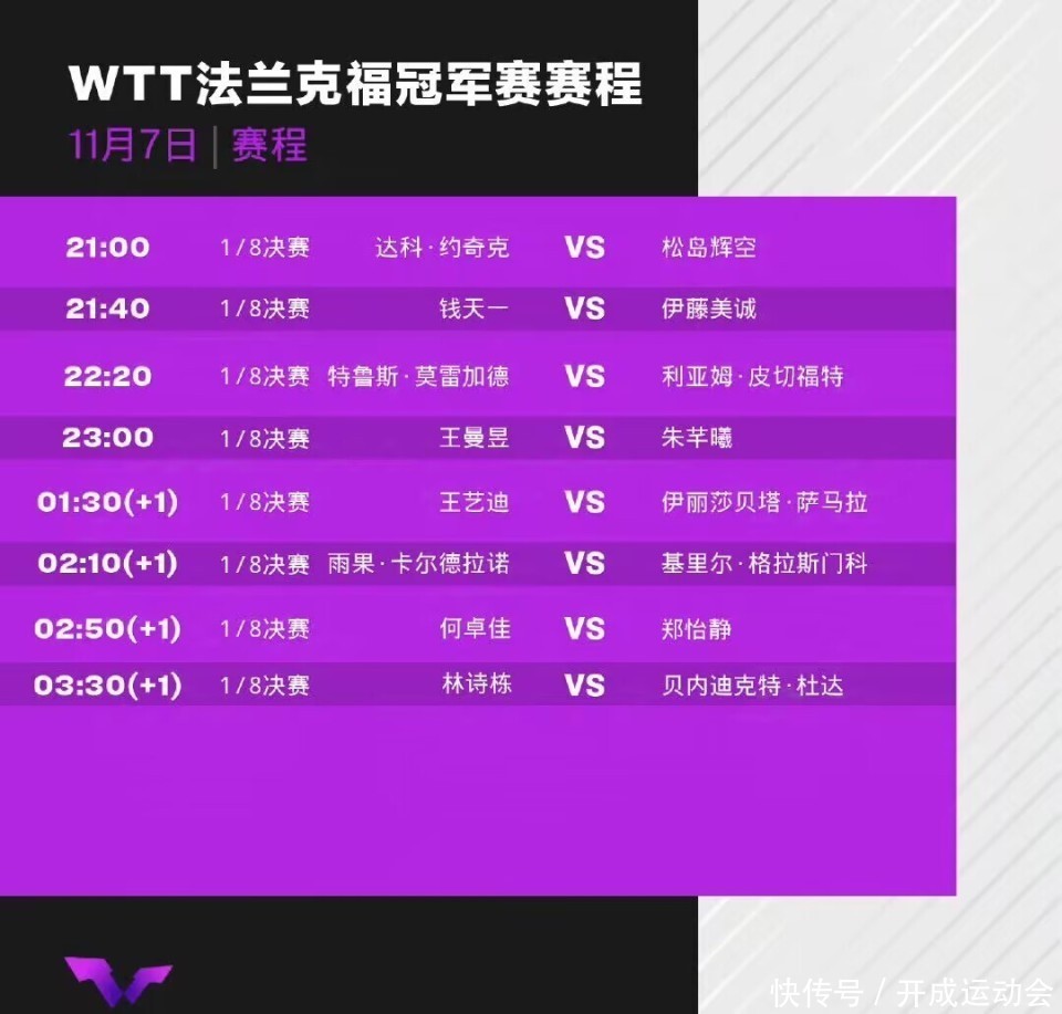 下一轮,也即是WTT法兰克福冠军赛女单1/4决赛,钱天一的敌手为“王曼昱VS朱芊曦”之间的胜者。
